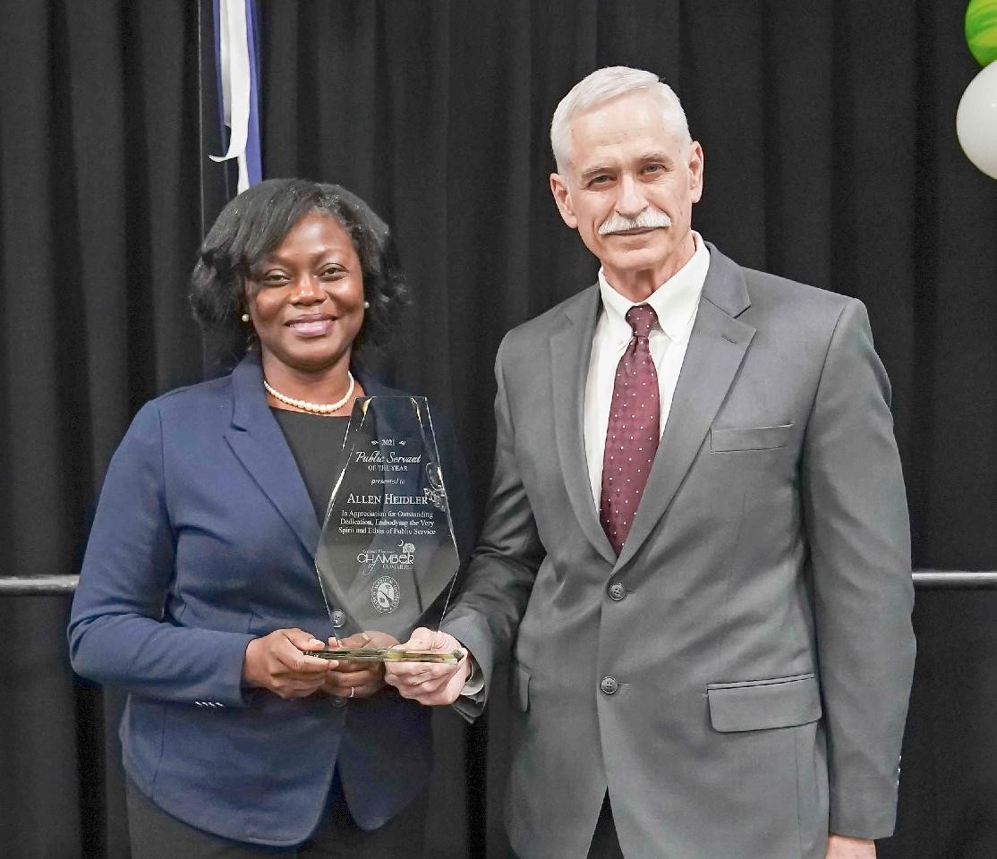 The City of Florence is proud to announce that Chief Allen Heidler was the recipient of the 2021 Public Servant of the Year, presented by the Greater Florence Chamber of Commerce and Francis Marion University. This award was presented to Chief Heidler by Mayor Teresa Myers-Ervin at the Annual Outlook Luncheon hosted by the Greater Florence Chamber of Commerce. Due to his humble nature, Chief Heidler was not aware he was the recipient of this award until half-way through the Mayor’s speech.