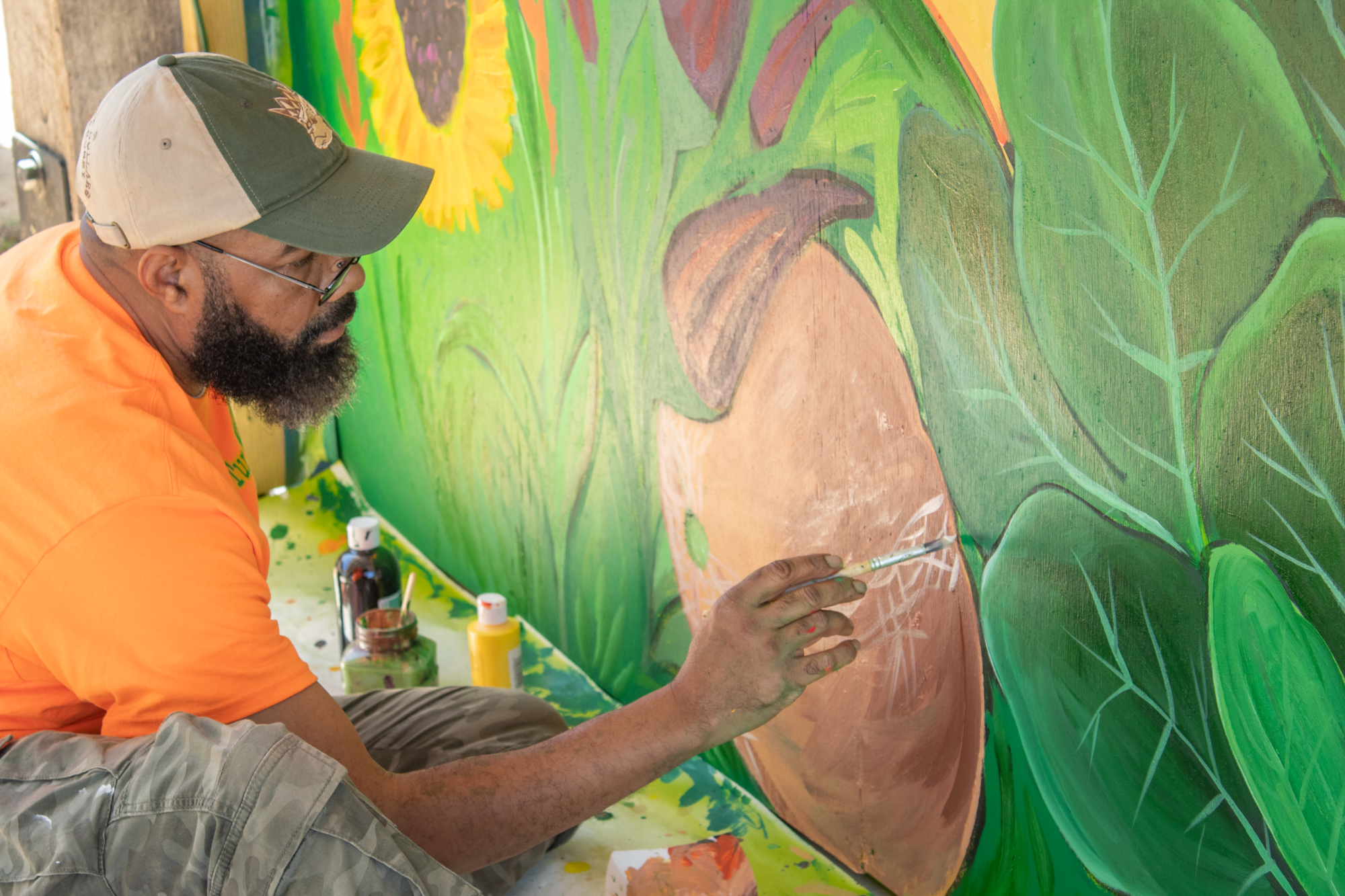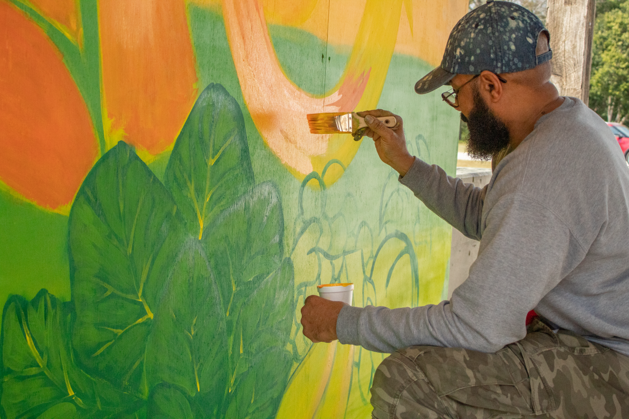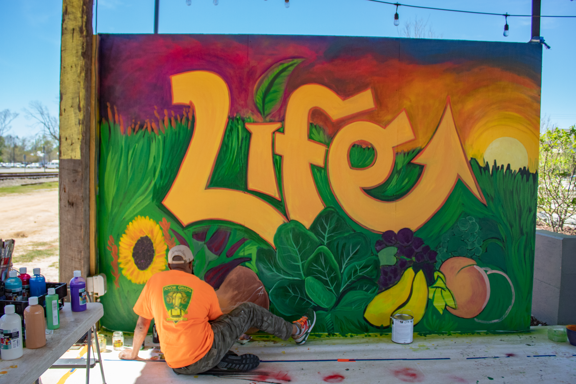 "Peace, my name is Wilbert Rice aka Infinite. I've recently completed a mural for the City Center Farmers Market titled "Cultivate A Good Life". The theme is about local and organic produce and the fruits and vegetables that are displayed in the art I often see in gardens in the surrounding areas. Farming itself is an art that everyone can apply to their own lives whether it's a task or personal goal. When you are striving for achievement, you should approach your task just like a farmer growing a garden this is why I designed the artwork to say, " Cultivate A Good Life" with the images of morning sun which symbolizes hope coming across the horizon of a field of lavender symbolizing peace and tranquility. Local and organic foods nourish the mind and body with the vital energy to move forward in a positive way. This mural adds a compliment to the City Center Farmers Market where locally grown fruits and vegetables can be purchased, with the vibrant color scheme of the art in the background the atmosphere is set. As a local artist in the Florence area my intentions are to spread positive vibes and the motivation to live better. If you are interested my services of concept and design art, I'm available. Feel free to contact Infinite by phone 843-230-3491 or email mekqahouse@yahoo.com, ya'll stay positive."