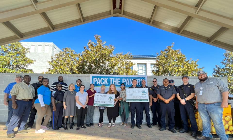 City of Florence staff, along with Florence One School District, Florence County, United Way of Florence County, and Duke Energy employees, volunteered and packed 1,000 meal boxes this morning at the Pack the Pantry event. This was a collaborative effort hosted by Duke Energy and Harvest Hope Food Bank at the Francis Marion University Performing Arts Center.